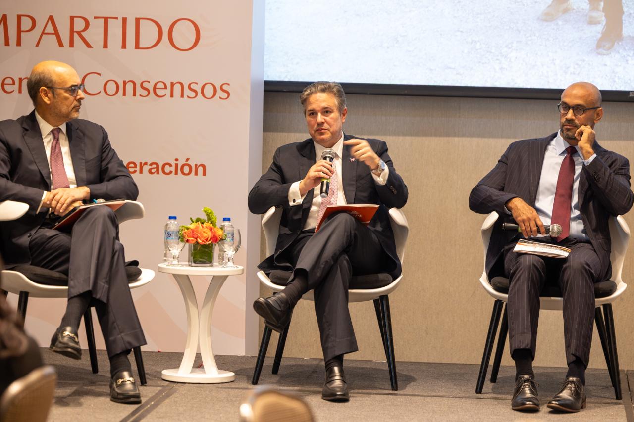 El panel, moderado por Iban Campo (LLYC), integró diversas perspectivas para abordar el futuro de la minería en el país. Junto a Peter Prazmowski, participaron Martín Valerio, director ejecutivo de CAMIPE; Padre Eugenio Rivas, rector del Instituto Superior Pedro Francisco Bonó (ISPFB); Eduardo Verdeja, presidente de la Sociedad Dominicana de Geología; Roberto Despradel, de Despradel & Asociados y Roberto Herrera, de Fondo de Agua RD.